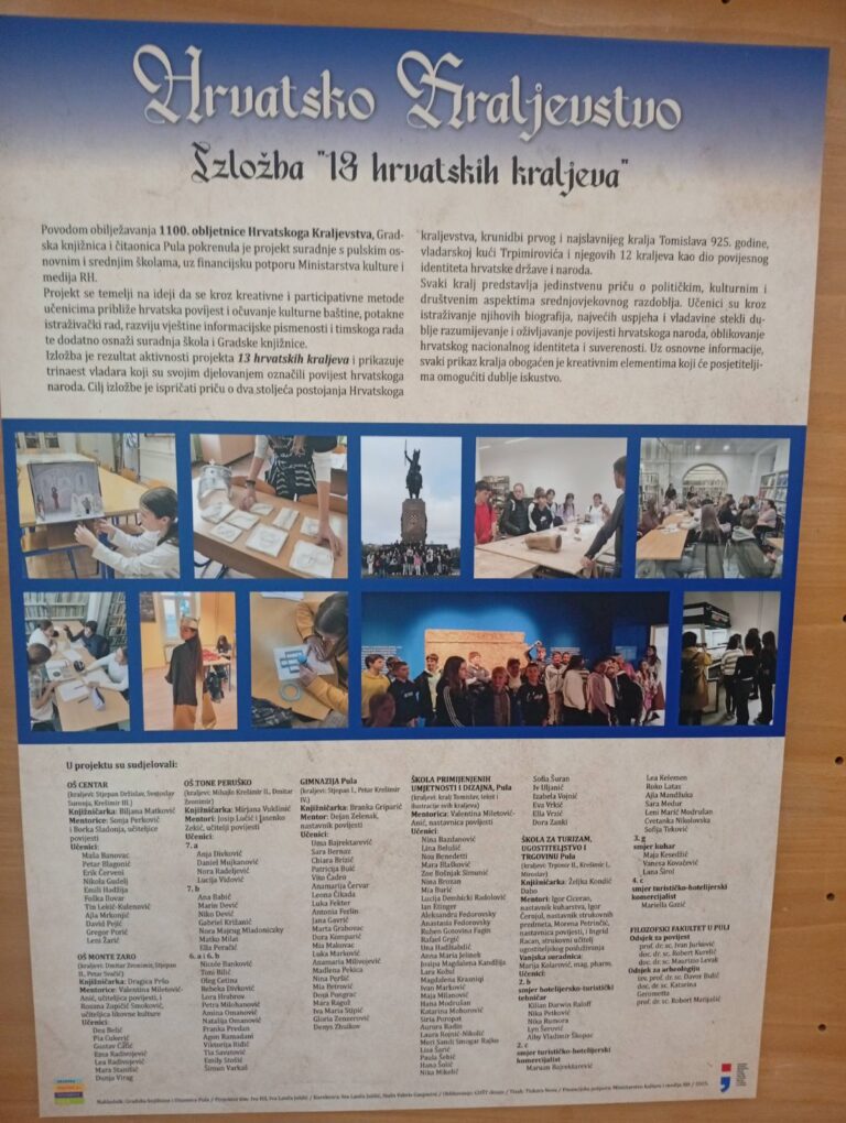 U ponedjeljak 22.12.2025. je u izložbenom prostoru Gradske knjižnice i čitaonice Pula, otvorena završna izložba radova projekta „13 hrvatskih kraljeva“, realiziranog u povodu obilježavanja 1100....